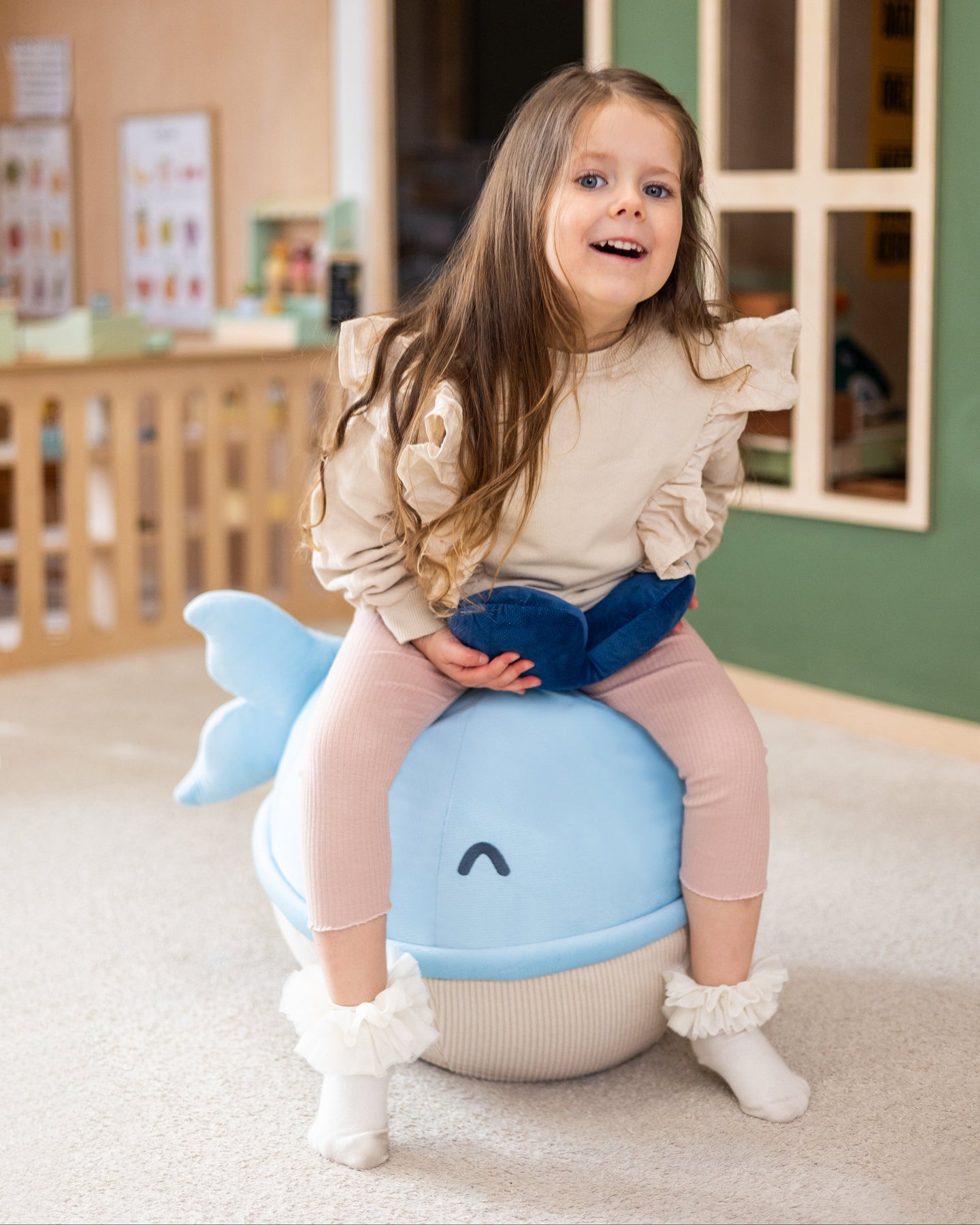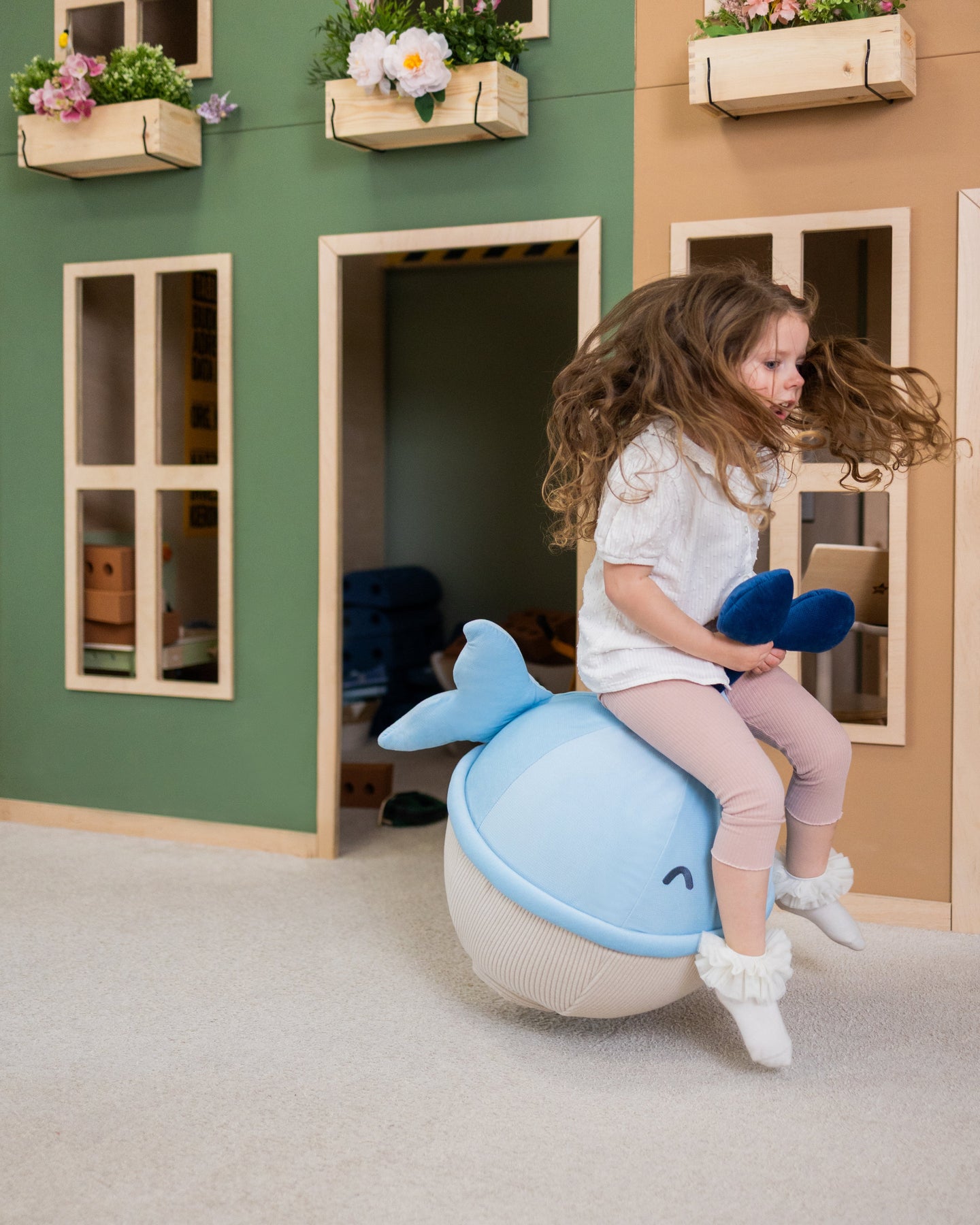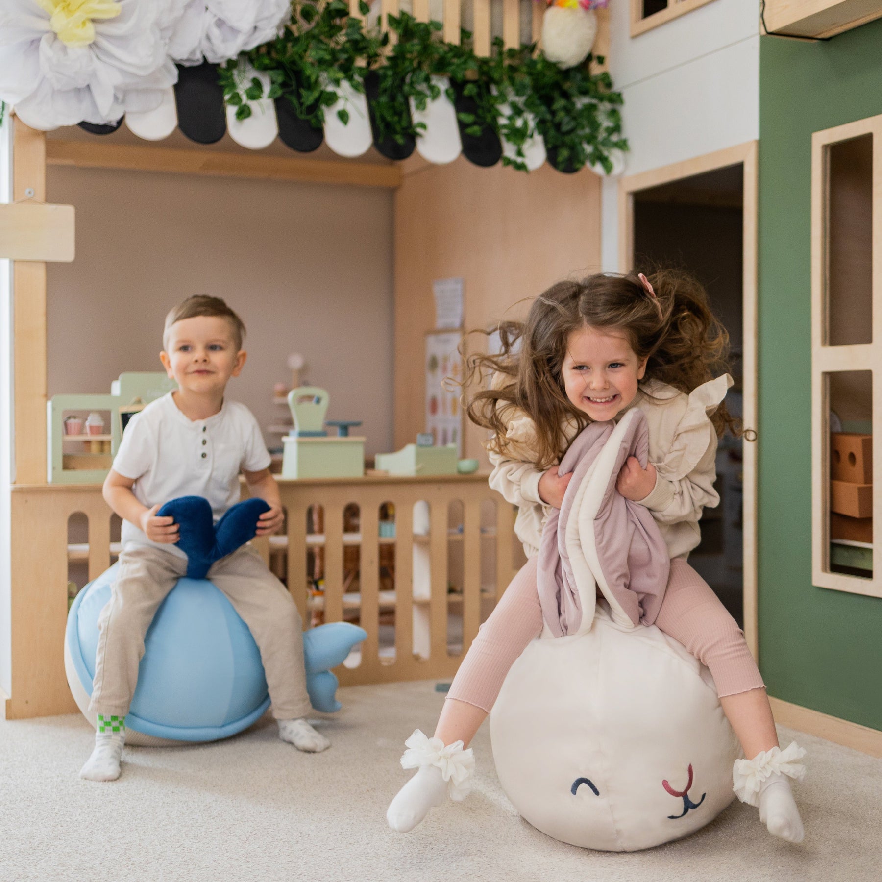 Nie. Skoczek może służyć także jako pufa do siedzenia, element toru przeszkód, pomoc w ćwiczeniach równowagi, a nawet „przyjaciel do przytulania”. Dzieci często wykorzystują go w zabawach tematycznych – jako statek, wieloryba, planetę lub piłkę do jogi.