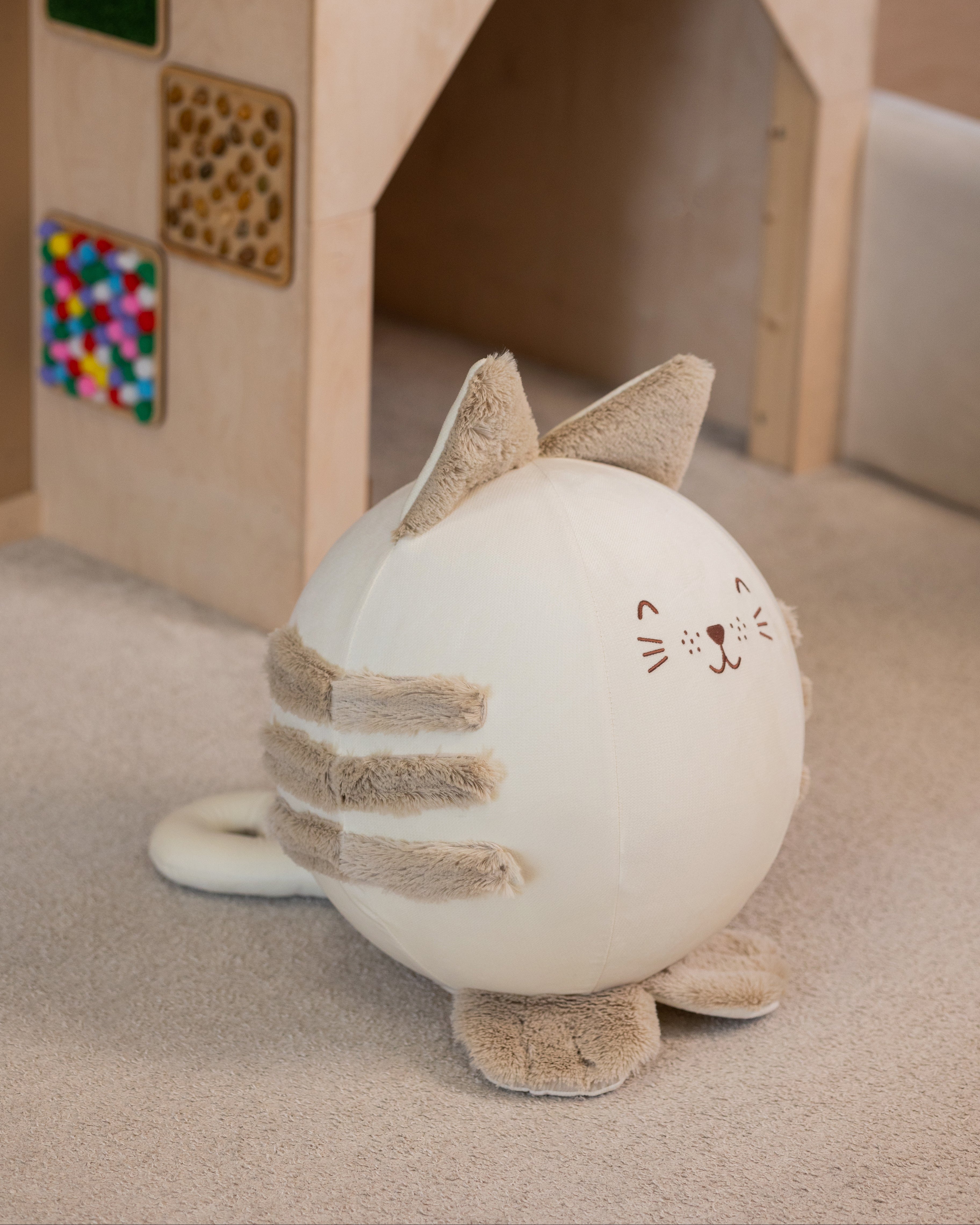 • tvar: stabilní koule s měkkými detaily (uši, ploutve, ocas – dle motivu)