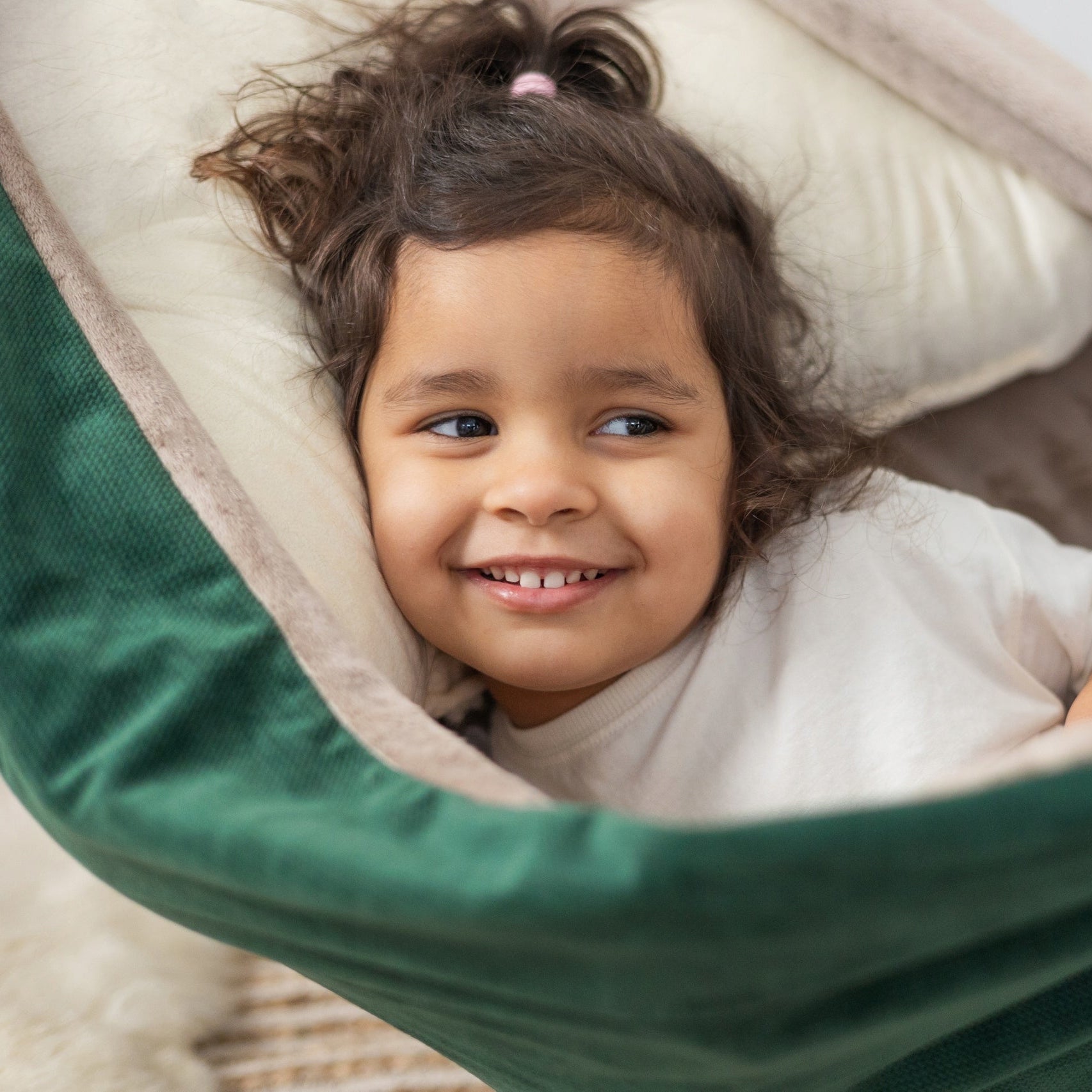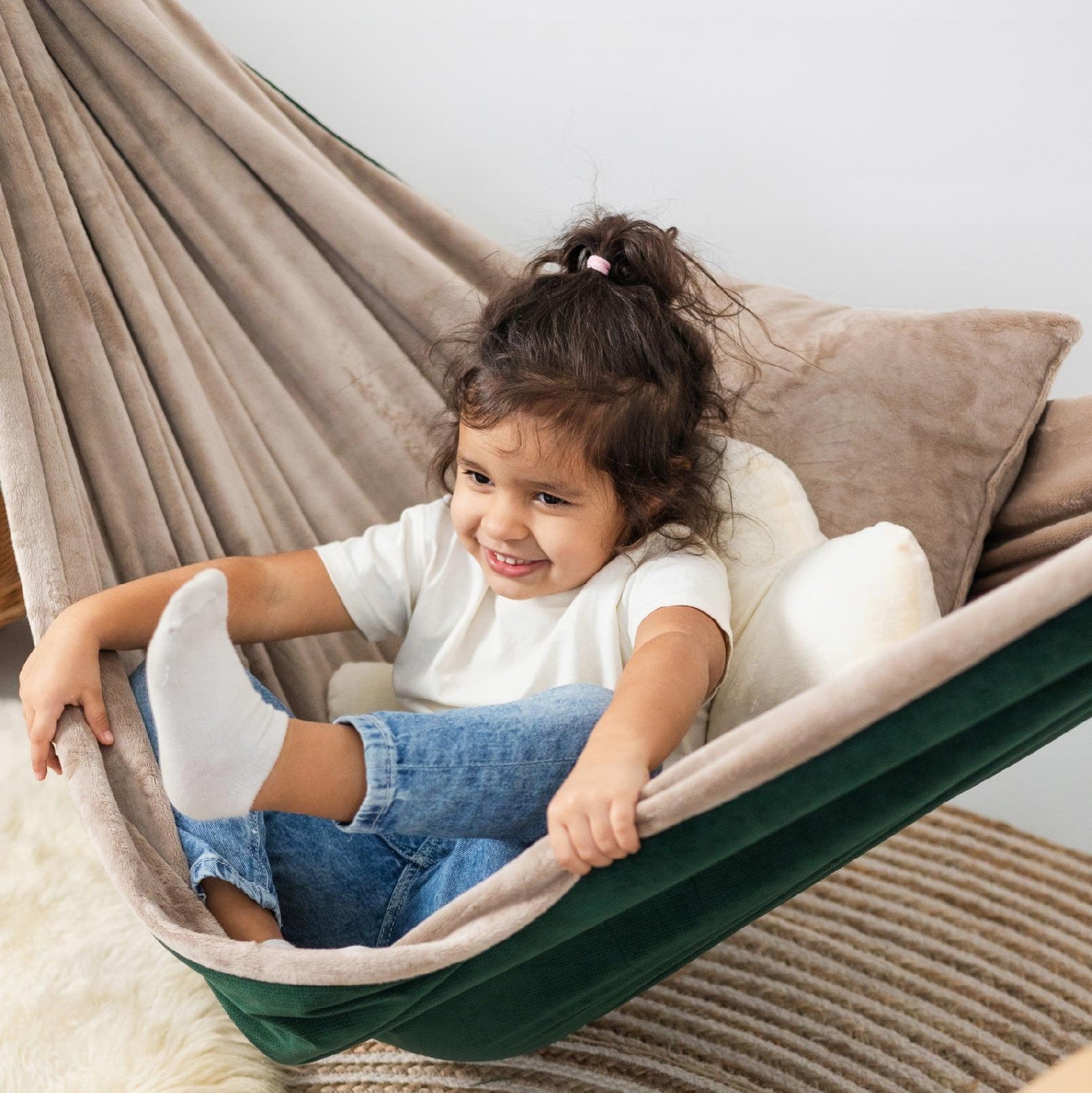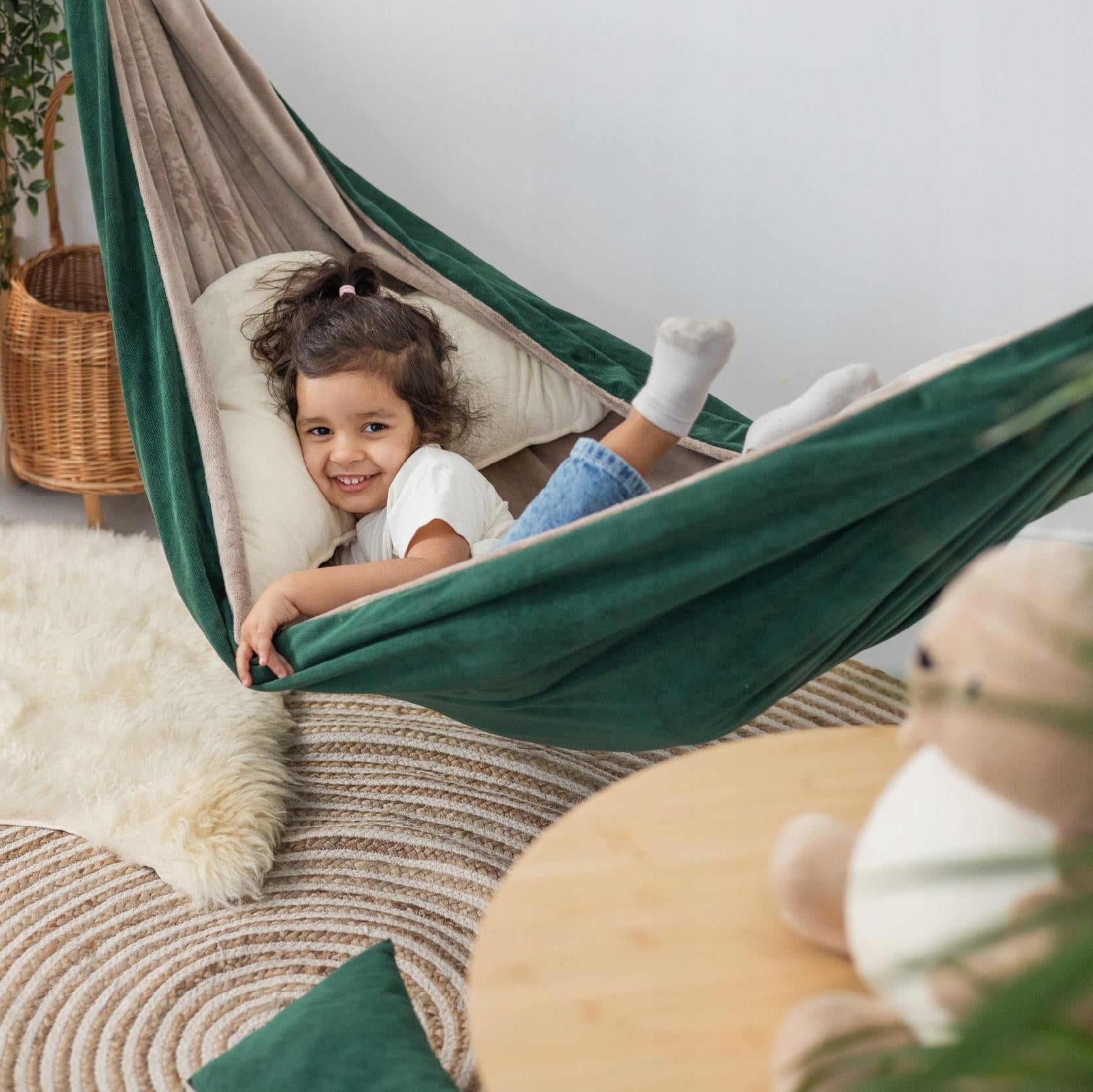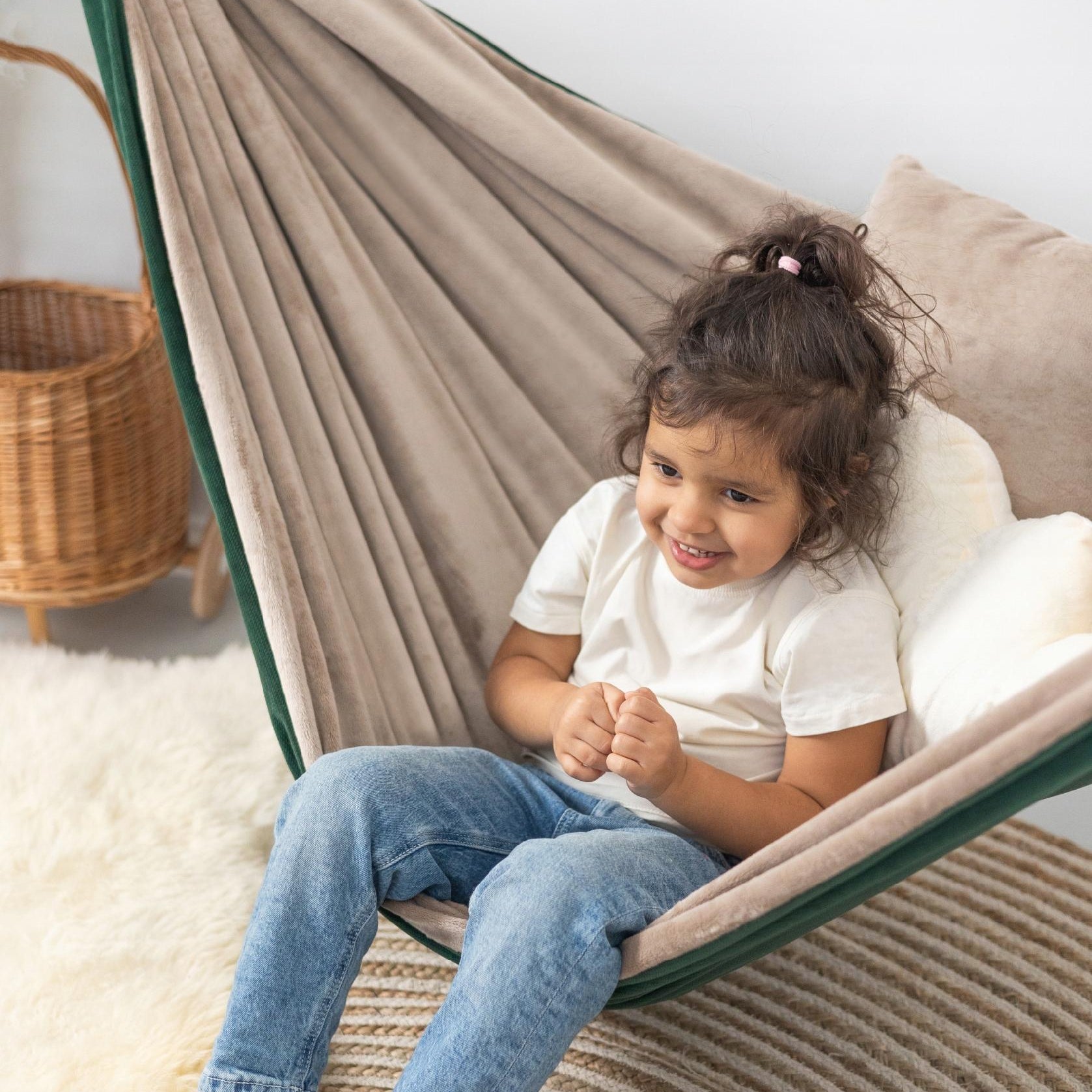 Agățat sus – perfect pentru legănat și somn când lumea de afară e prea zgomotoasă.